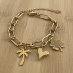 Charms Palmier, Coeur er Trèfle en acier inoxydable doré à l’or fin