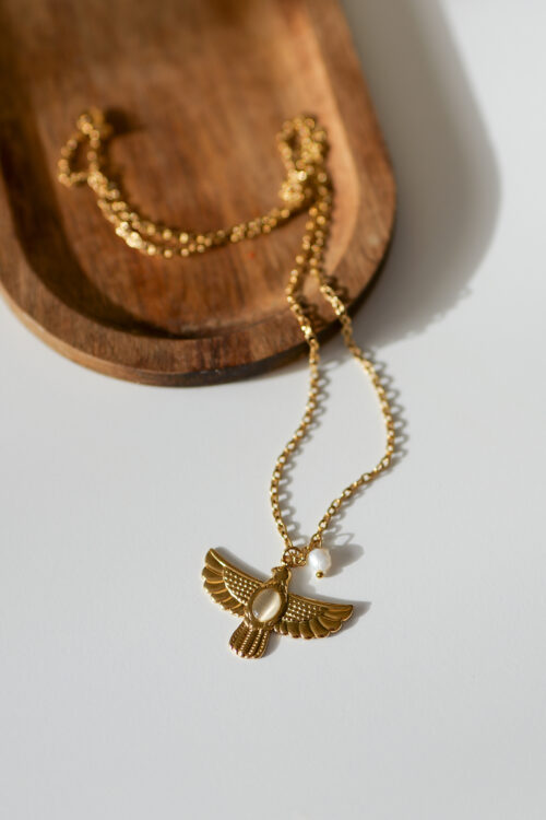 Chaine et Faucon en acier inoxydable doré à l’or fin